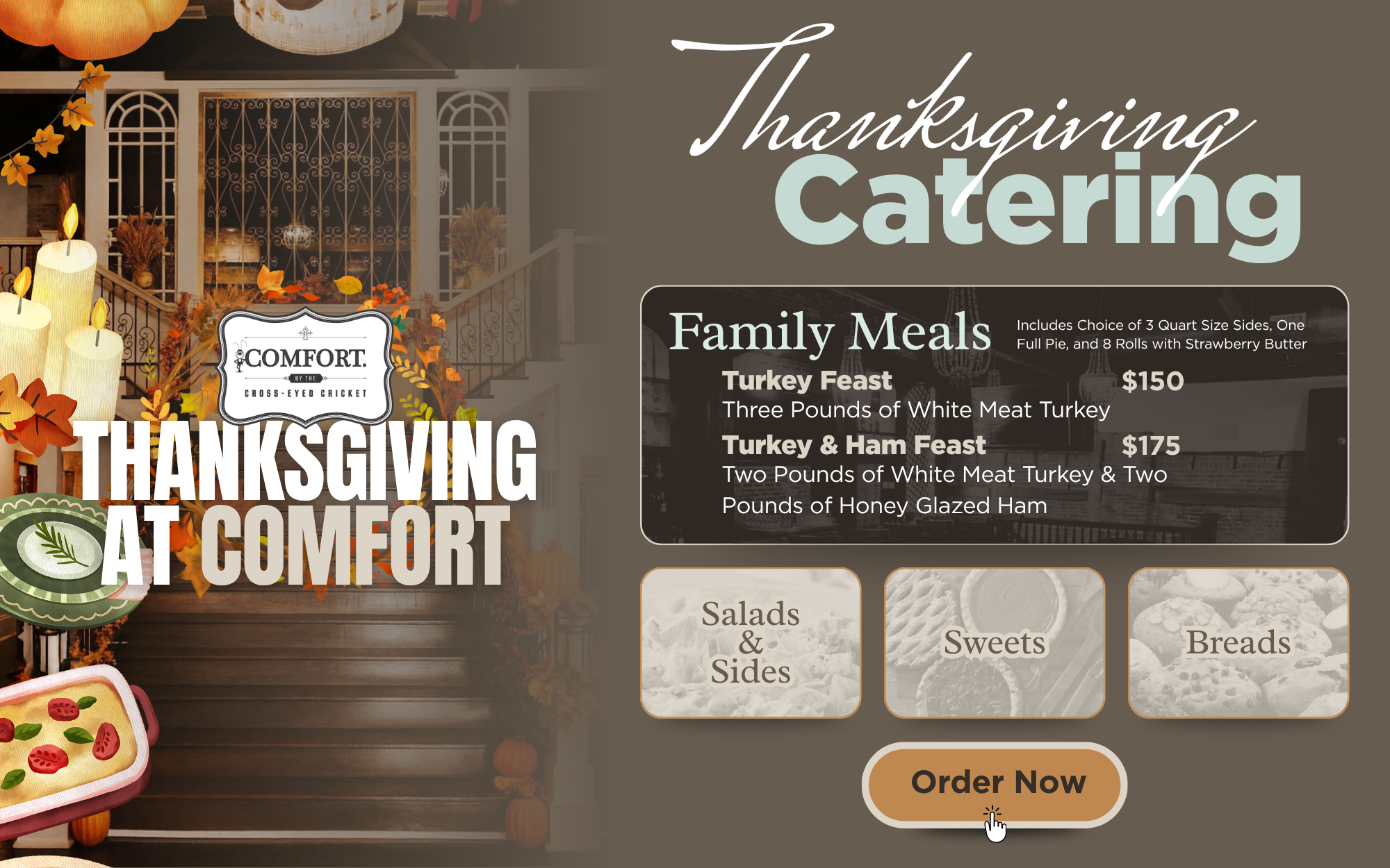 At COMFORT by the Cross-Eyed Cricket, we've redefined Southern hospitality for today's discerning diner. Nestled in the heart of Evansville's resurgent Main Street district, our restaurant occupies a beautifully restored 1850s building that hums with historic charm and contemporary energy. More than just a place to eat, we're a gathering spot for the community, where every meal tells a story of tradition, craftsmanship, and connection.